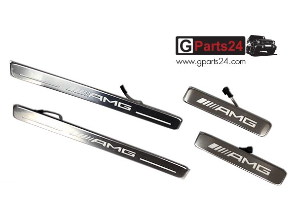 Sie erhalten hier eine komplettes Set Original Mercedes G63 AMG Einstiegsleisten Abdeckschienen beleuchtet für vorne Fahrer-, Beifahrerseite und den Fondbereich links und rechts.