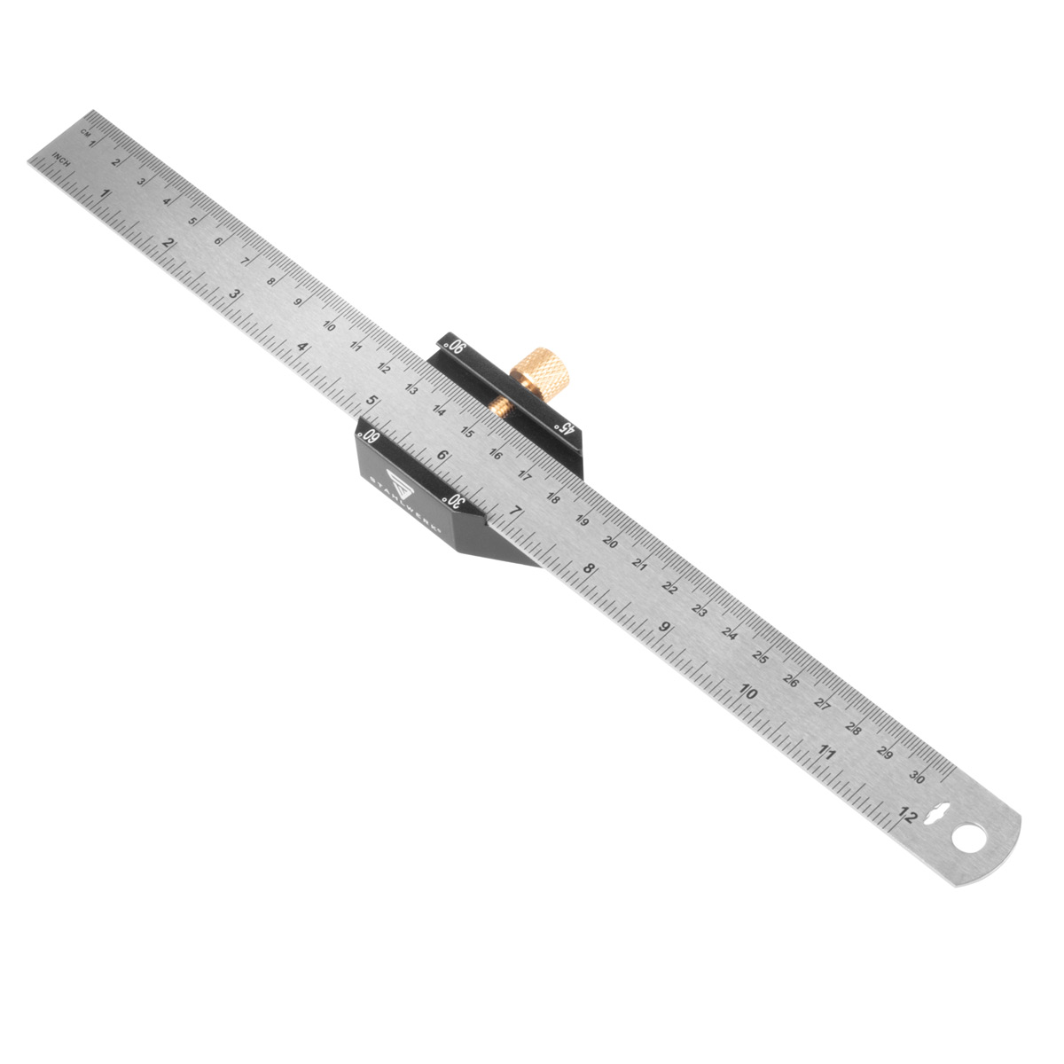 Das perfekte Messwerkzeug für Handwerker: Das STAHLWERK Winkel-Anschlaglineal eignet sich zum präzisen Messen, Anreißen, Markieren und Zeichnen. Das Streichmaß besitzt übersichtliche, lasergeätzte Skalen und Markierungen, auf welchen die exakten Distanzen komfortabel in Inch und cm abgelesen werden können. Der variable Anschlag lässt sich schnell auf den gewünschten Winkel von 30° / 45° / 60° / 90° einstellen und auf das Werkstück übertragen. Gefertigt aus Edelstahl ist die multifunktionale Markierungslehre verwindungsfrei, äußerst stabil und überzeugt durch eine hochwertige Verarbeitung. Das Markierungslineal eignet sich ideal für die professionelle Anwendung in Industrie, Handwerk und DIY.